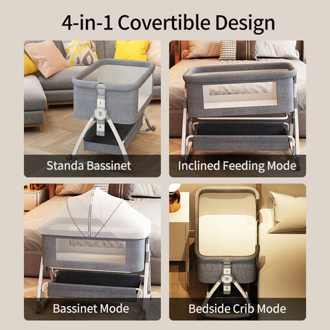 4 in 1 Portable Baby Bedside Crib with Breathable Net