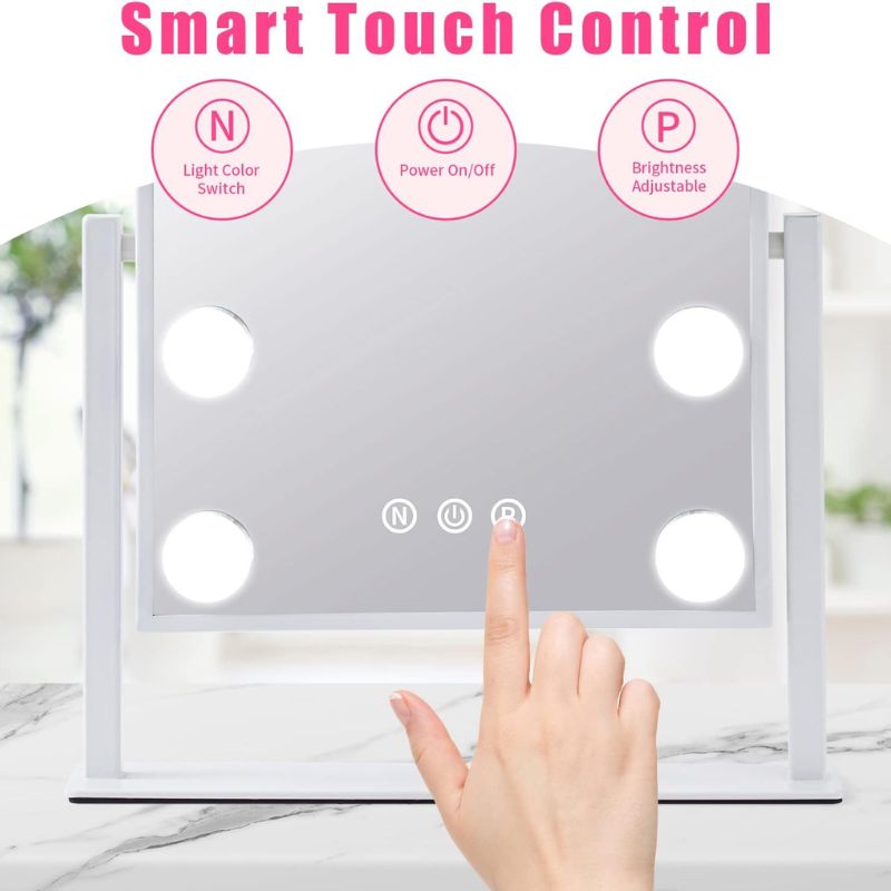 Three Color Dimming: 9 big bulb lights providing a large and bright viewing, adjustable brightness, and 3 light color modes(daylight (5500K), cold light(7800K), warm light(4000K)), helping you to finish a flawless professional makeup suitable for any occasions.