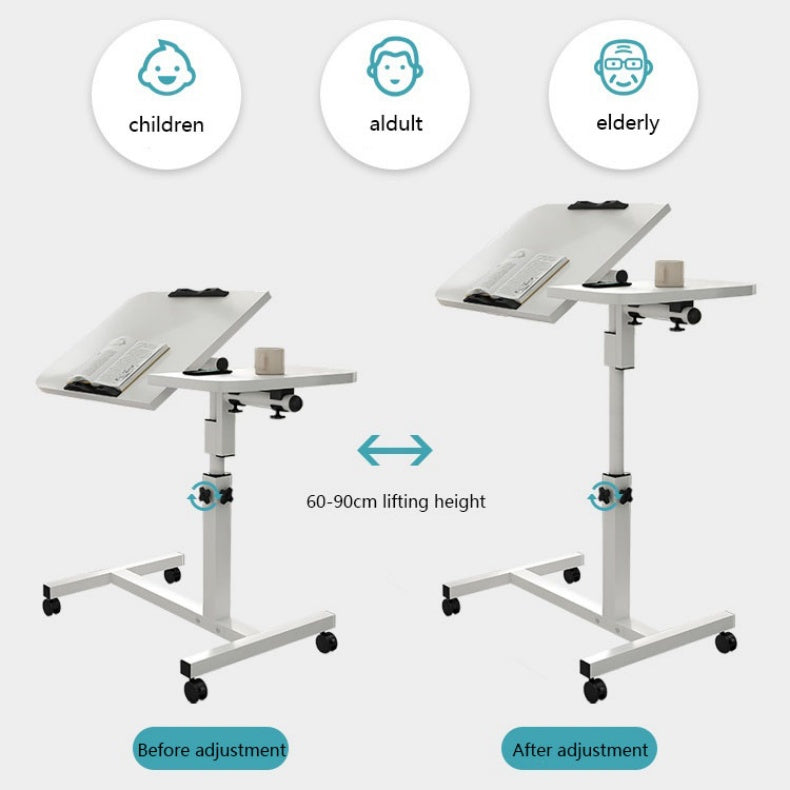 The bedside table on wheels is equipped with a folding board design that supports 0-90° flipping and can be used for reading, writing, painting, etc.