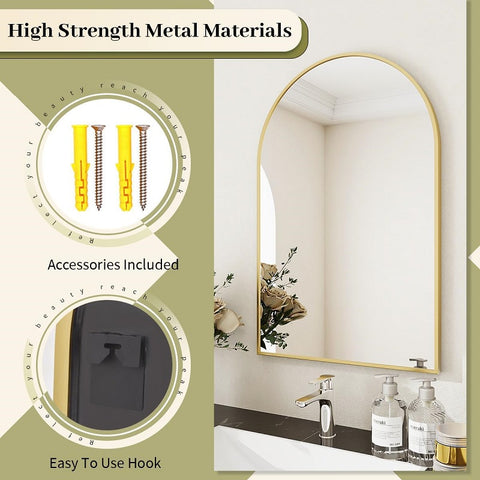 - Quick Installation: The arched top mirror is very easy to install. Use a drill to make holes at the marks, insert expansion screws into the pre-drilled holes, and then use a screwdriver to tighten the l screws. Accessories include screws, expansion screws.
