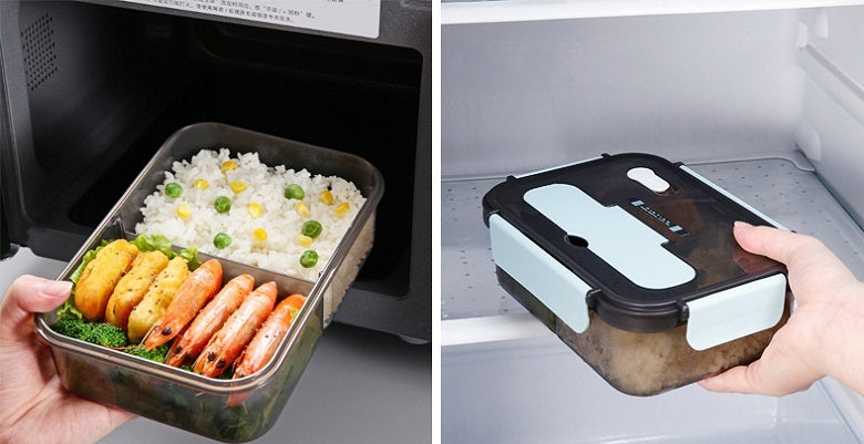 - The lunch box is perfect for food prep, storage, and carrying out. The compartments help to plan a well-balanced diet not only for adults to keep fit, but also for kids to have a comprehensive nutrition.