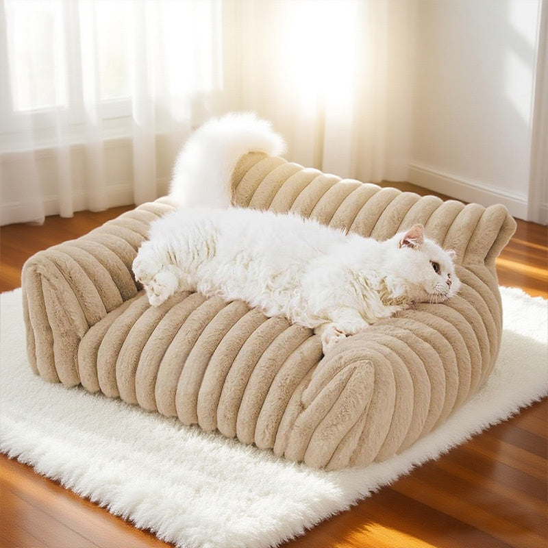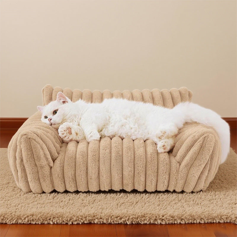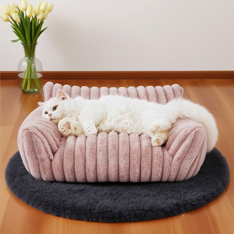 This pet sofa features a non-slip bottom design, ensuring your pet's safety and stability by preventing unwanted movement, providing a secure resting space for your furry companion.