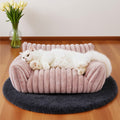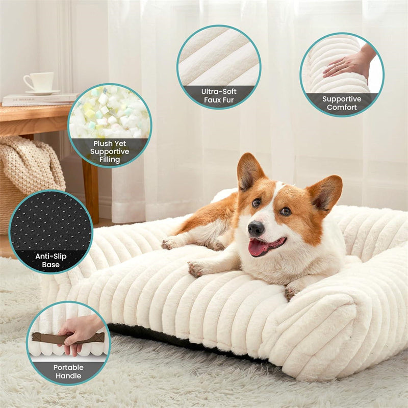 Our pet sofa bed strikes a comfortable balance between firmness and comfort, designed to provide a cozy, warm place for your pet. Made with ultra-soft faux rabbit fur, it soothes your dog's nerves and encourages faster relaxation. Its three-sided construction provides optimal head and neck support, creating a balance of support and comfort for pets of all sizes, providing warmth, comfort, and a sense of security.