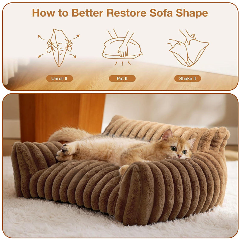 The pet sofa comes with an easily removable cover, making deep cleaning a breeze. Simply machine wash and tumble dry to keep your pet's bed fresh and hygienic. Note: Air dry immediately after washing to prevent fur matting.