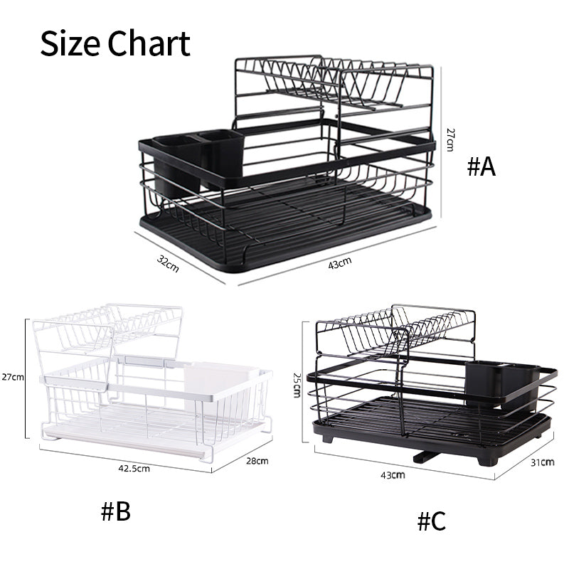 - Two Tier Extra Large Capacity: Dish drying rack for kitchen sets Includes 2 tier cutlery rack and drainer base, utensil holder. Has enough space to store more stuff without worrying about counter clutter, you can store different sizes of cookware and make the most of every inch of space in your kitchen.