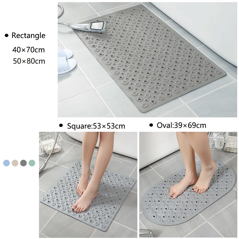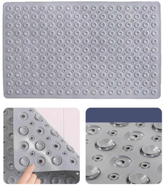 Our bathroom mats are non-slip, antibacterial, and anti-mildew. It is also a massage shower mat for children, the elderly, and pets.