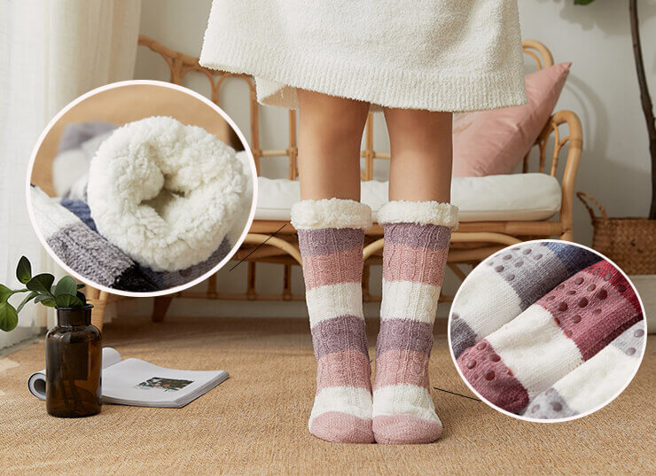The Extra-warm Fleece Indoor Socks is one of the must-have items in your wardrobe in cold weather. The fleece can trap the heat effectively and warm your feet from toes to the calf. With the soft fleece, it is comfortable to wear and you can feel like walking with barefoot.