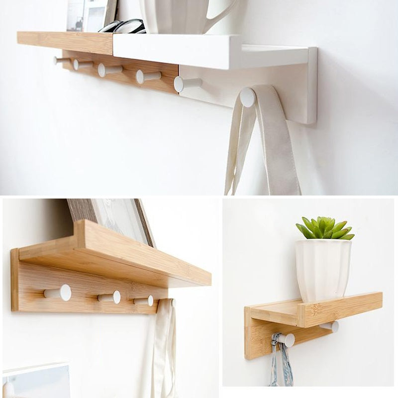 Bamboo Wall Mounted Floating Shelves with Hooks