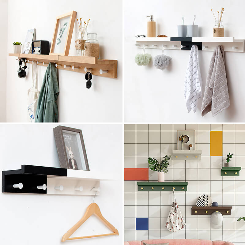 - Simple Design, Multi-Purpose: 2/3/4 pegs hooks are ideal to hang coats and hats, and the floating shelf is great for your collectibles or small items such as photos, books, small plants, and toys.