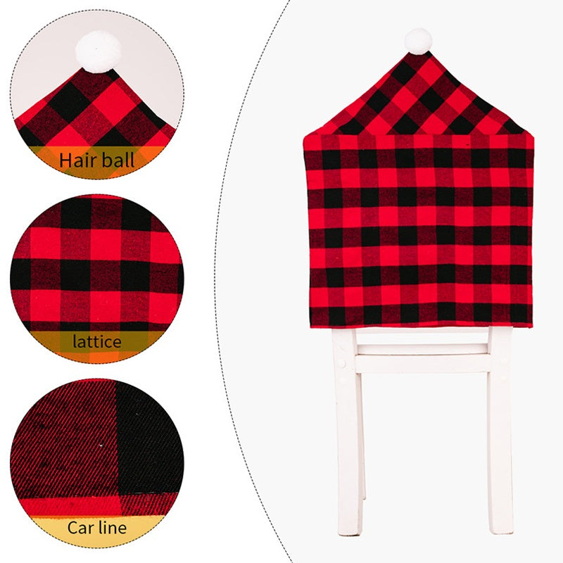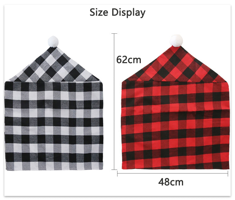 Christmas Decorations: Christmas chair cover is decorated with cute pom-poms, and bright red & black plaid, creating a romantic warm atmosphere and bringing the happiness and joy of Christmas to your dining rooms.