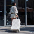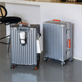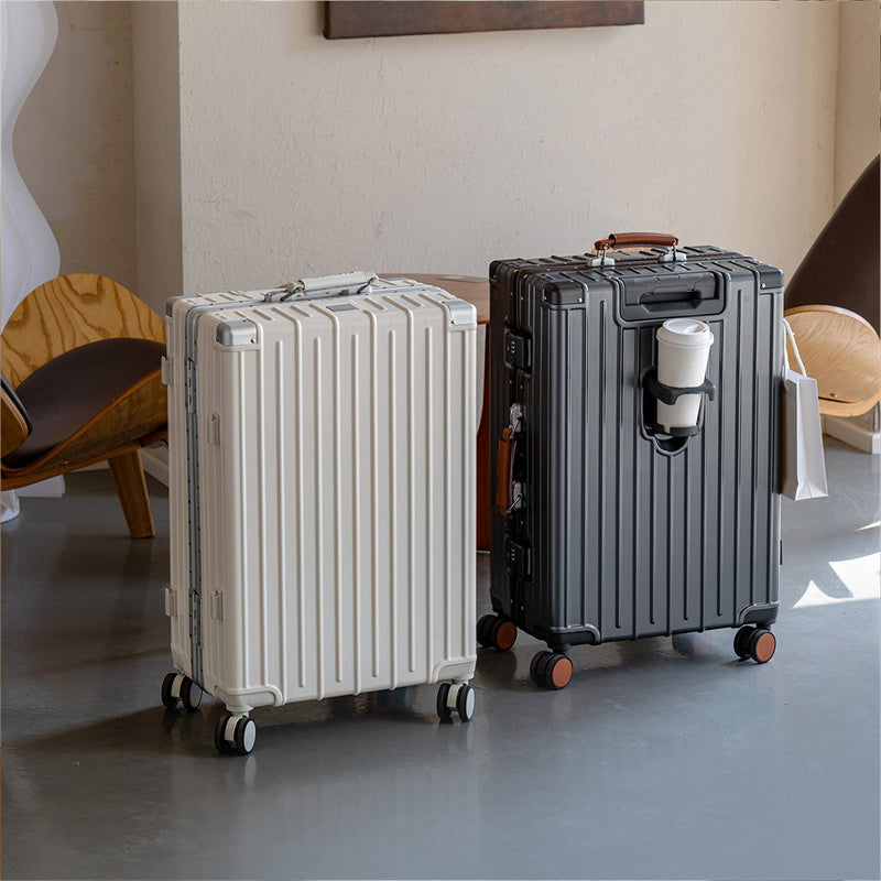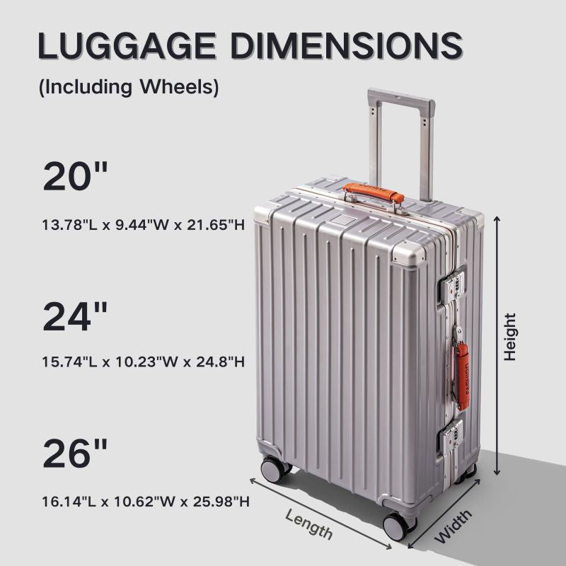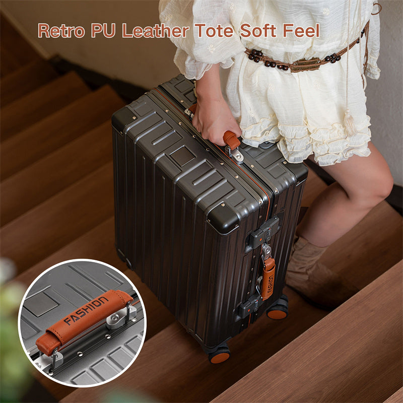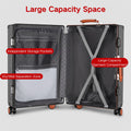 This premium, stylish luggage comes in three sizes: the 20-inch model is perfect for carry-on travel, while the 24-inch and 26-inch models are ideal for checked baggage. Constructed primarily from durable ABS+PC composite material. The color-contrasting leather-wrapped plastic handles and overall streamlined design combine rugged durability with stylish aesthetics. Whether for weekend getaways or extended journeys, this versatile suitcase strikes the perfect balance between practicality and fashion-forward appeal.