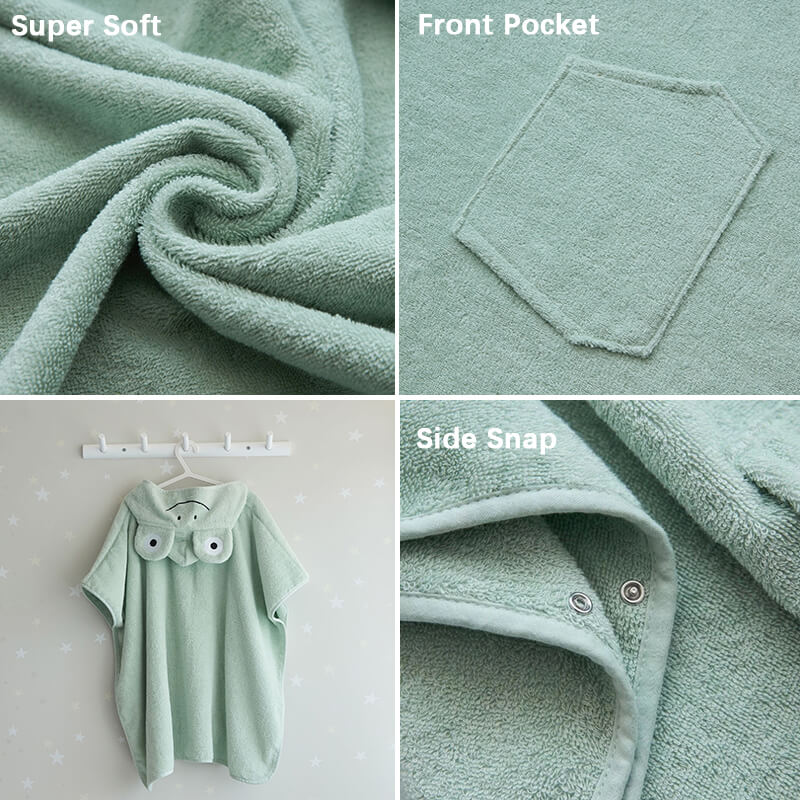- Side: Our children's towel has two simple side snaps to keep warm and prevent colds when needed, which are very convenient to put on and put off. Also, it provides the function of sleeves to protect children's privacy.