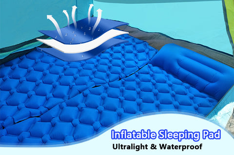 - Advanced Built-in Foot Pump: The foldable camping airbed is equipped with a foot pump, with which you can fully inflate the large sleeping pad in 1 minute by simply stomping, saving 40%-50% inflation time. No need to blow by mouth.