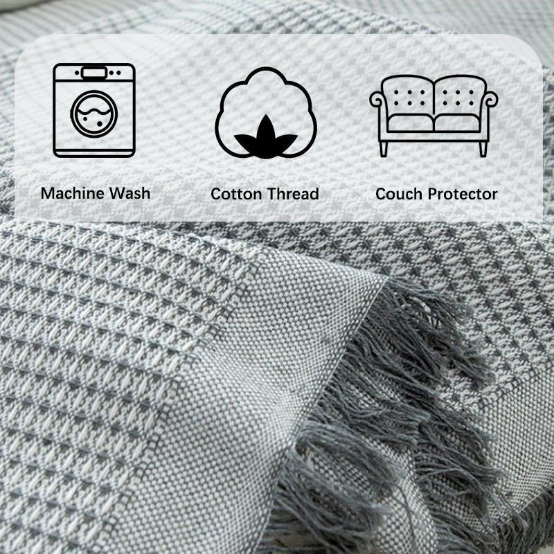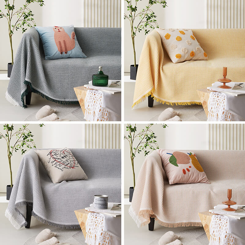 - High-quality Materials: Our knitted sofa blanket is made of cotton thread, with an elegant waffle weave textured and short furry touch. It's anti-wrinkle, fade-resistant, and doesn't shed.