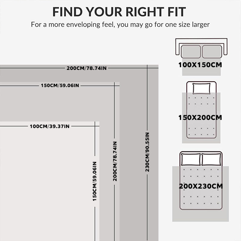 Available Sizes: Throw (40"×60" / 100×150cm), Twin (60"×80" / 150×200cm), King (80"×90" / 200×230cm)