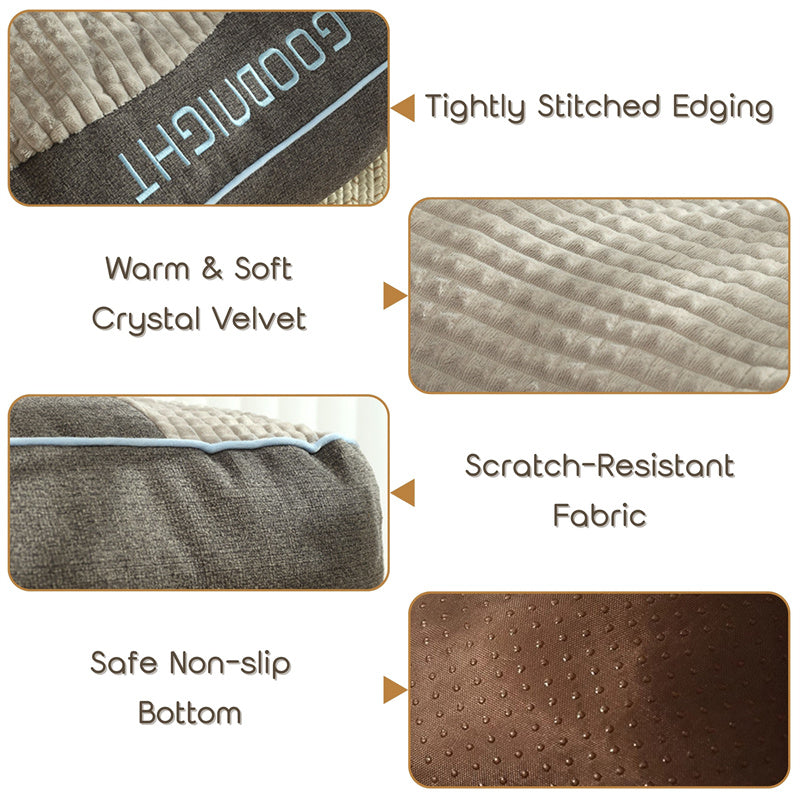 The bottom is covered with anti-slip granules, effectively securing the dog bed in place and preventing movement. Slippery beds can be frightening. The non-slip base keeps the cushion stable on any surface, ensuring your dog feels safe when getting on and off.