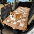 The soft-hued flannel fabric with a sophisticated pattern complements car interiors and home decor. Protect SUV seats, large sofas, and floors from scratches, stains, and pet hair. Made with dense flannel and skin-friendly PP cotton, it provides comfortable cushioning for your pet. Non-slip silicone particles ensure a secure fit on leather/velvet surfaces, even during sharp turns or when your pet is agitated.