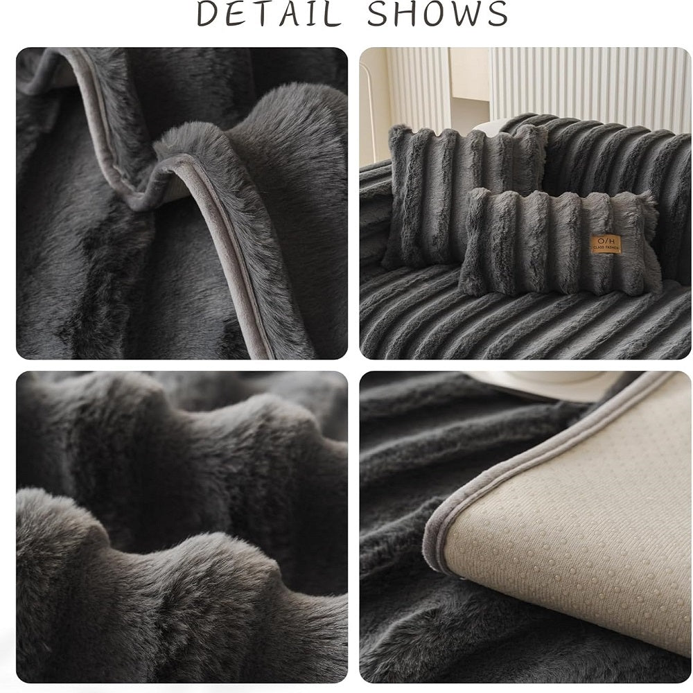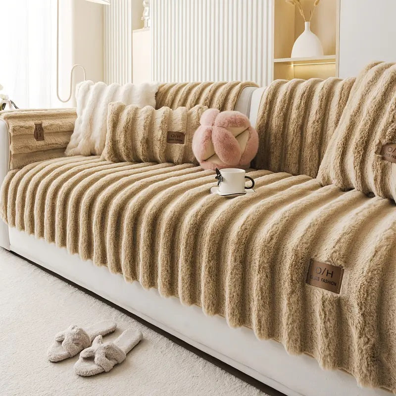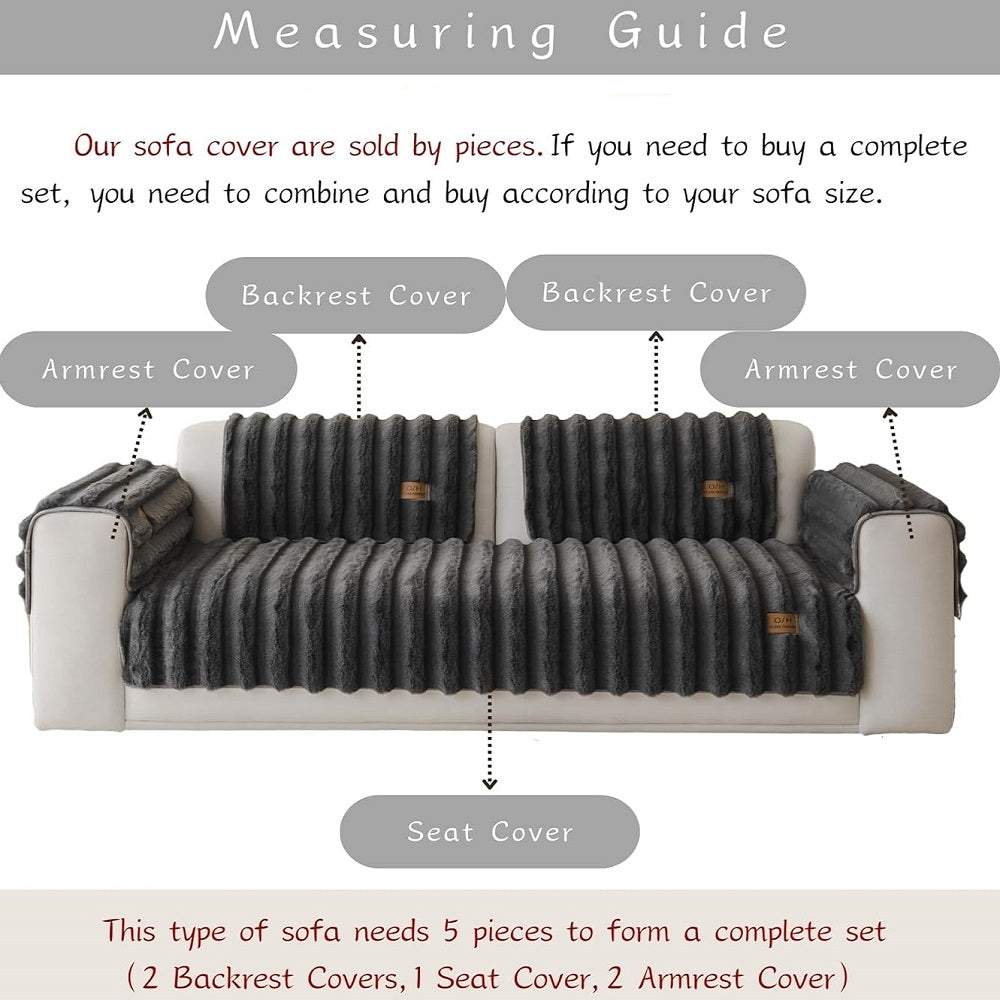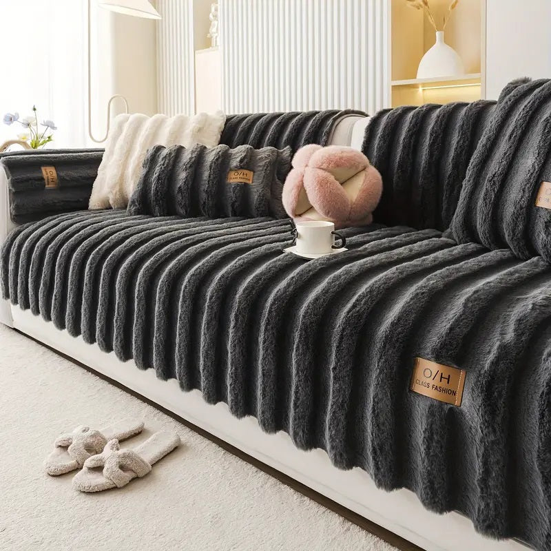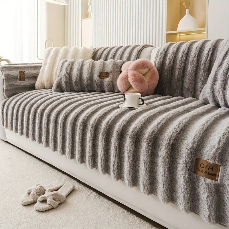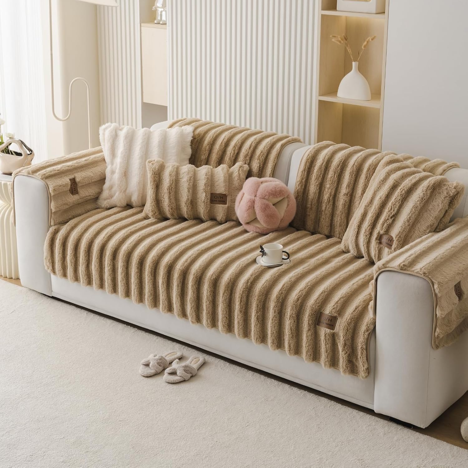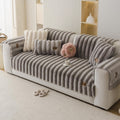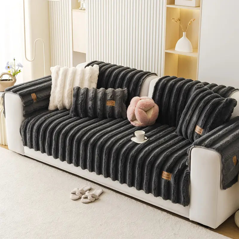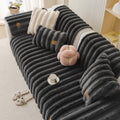 Rabbit Plush Sofa Cover, Thick Soft Fur Vertical Stripe Sectional Couch Cover