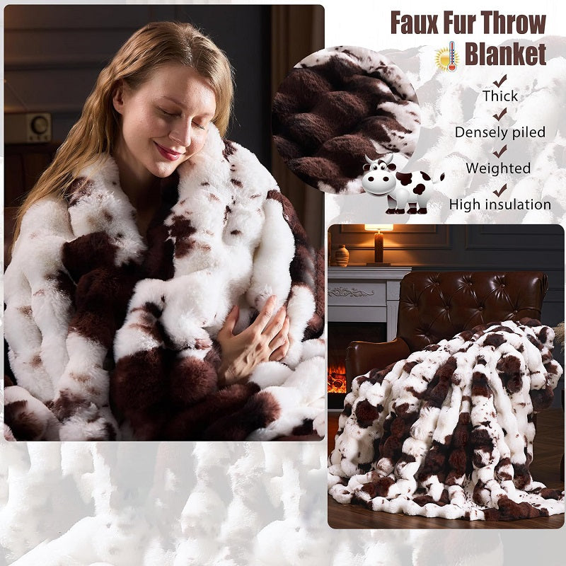 - NOVELTY DESIGN: Our bubble blanket is made of 750GSM synthetic rabbit fur fabric with crystal velvet lining and neat stitch sealing to prevent any looseness. It features a double-layer design with a unique 3D ‘bubble’ pattern, effectively balancing warmth and lightweight properties.