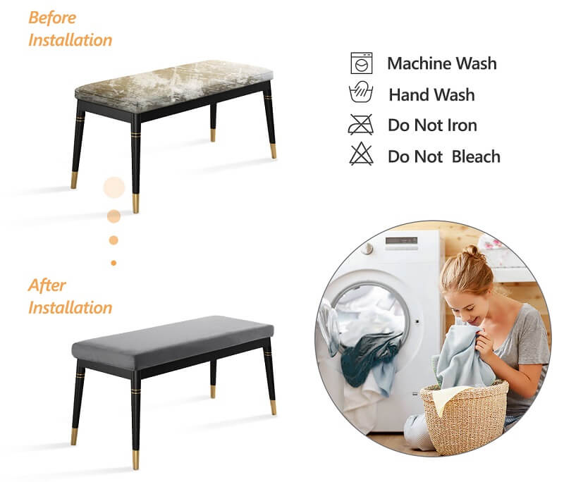 - Keep In Place--This bench cover equipped with an elastic band and 4 straps with splicing buckles, secure fit with a sewn-in elastic hem so that it stays in place without shifting or moving.