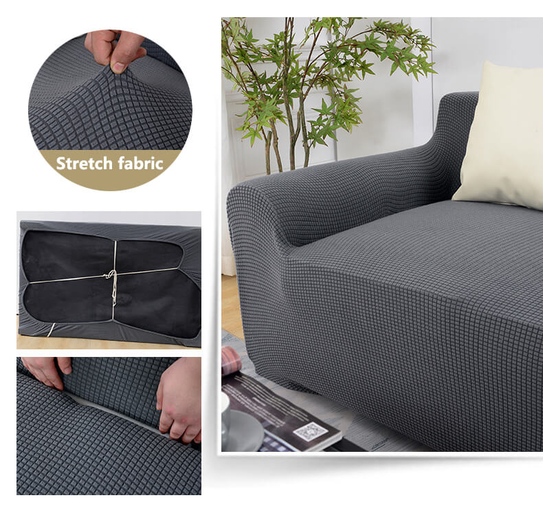 Our 1-piece universal couch cover comes with elastic bottom that provides 360° coverage to your furniture, full covering your couch for a better look with wrinkle-free.
