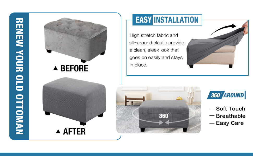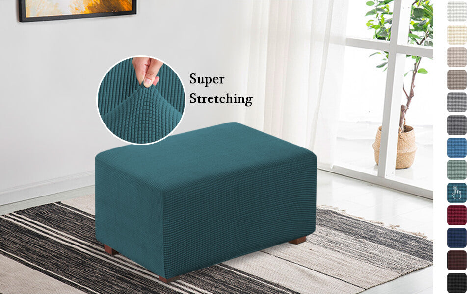 - Perfect Fit: This innovated 1 piece ottoman cover is crafted from durable and soft high stretch knitted jacquard fabric. Suitable for most rectangular and 5 sided storage ottomans.