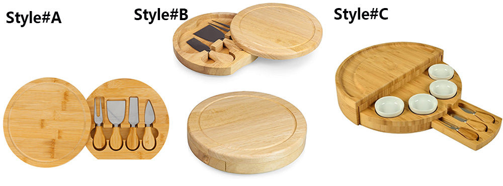 - #C: 1 pc × cheese board+ 3 pcs ×stainless steel cheese knives +4 pcs ×ceramic serving bowls