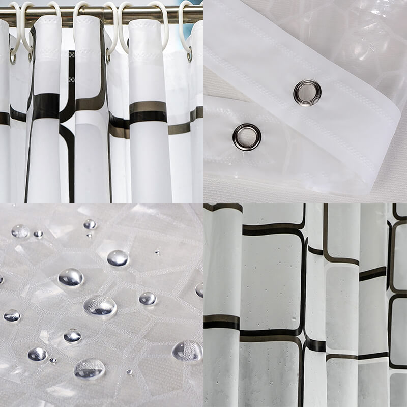 - The shower curtain is made of thick PEVA fabric, which makes the water easy to slip off, dry quickly. Modern, color design, looks simple and stylish.