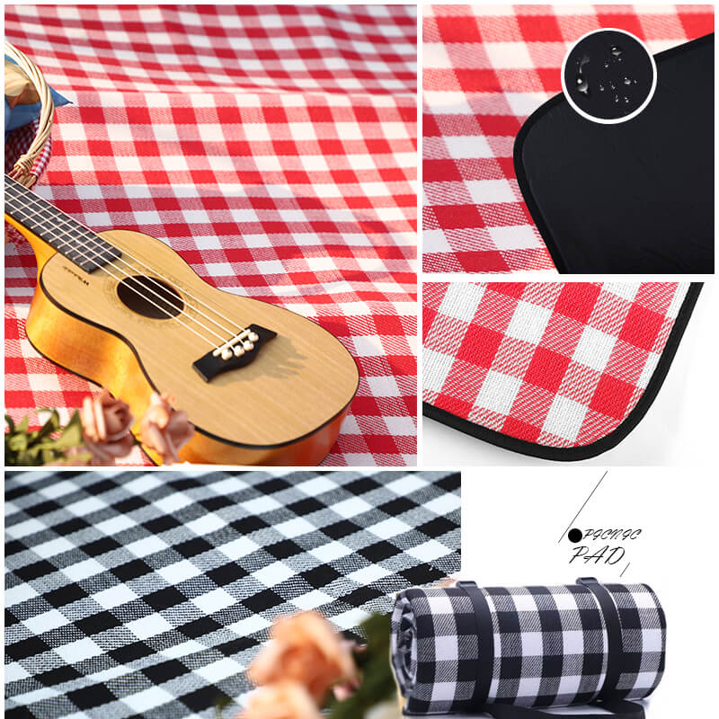 Extra Large Waterproof Checkered Picnic Blanket with Straps