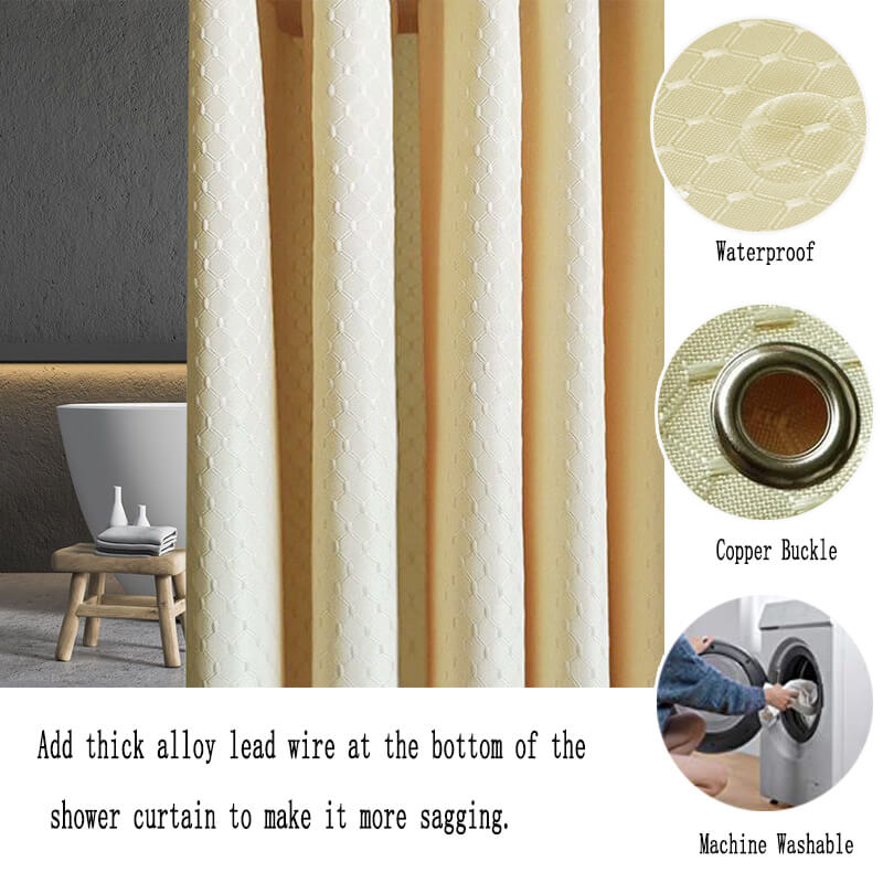 - Waterproof: Made of fully tested polyester fabric, this shower curtain promotes water beading and dries quickly to withstand wet bathroom conditions.